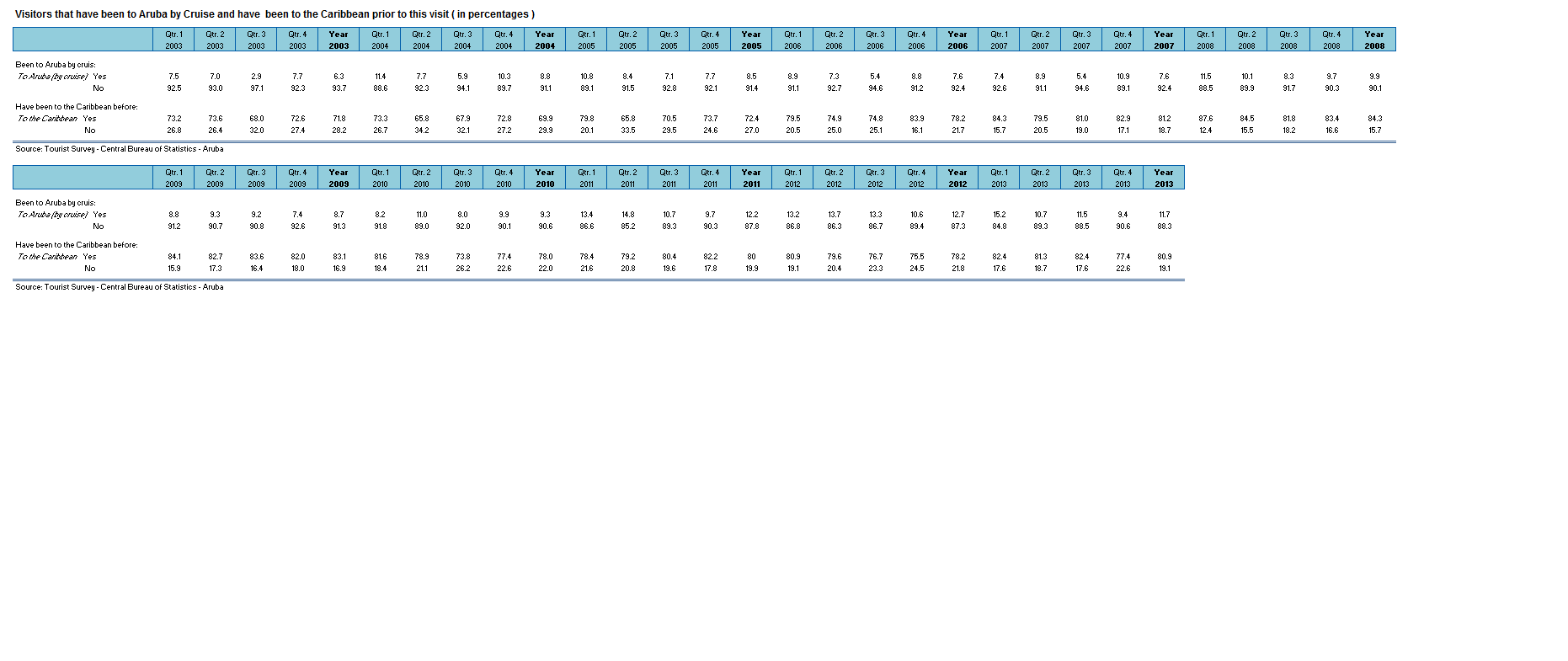 Db.1.5. Visitors that have been to Aruba by Cruise and have been to the Caribbean prior to this Visit Download items: Db.1.5.2013 – – (37 kB)