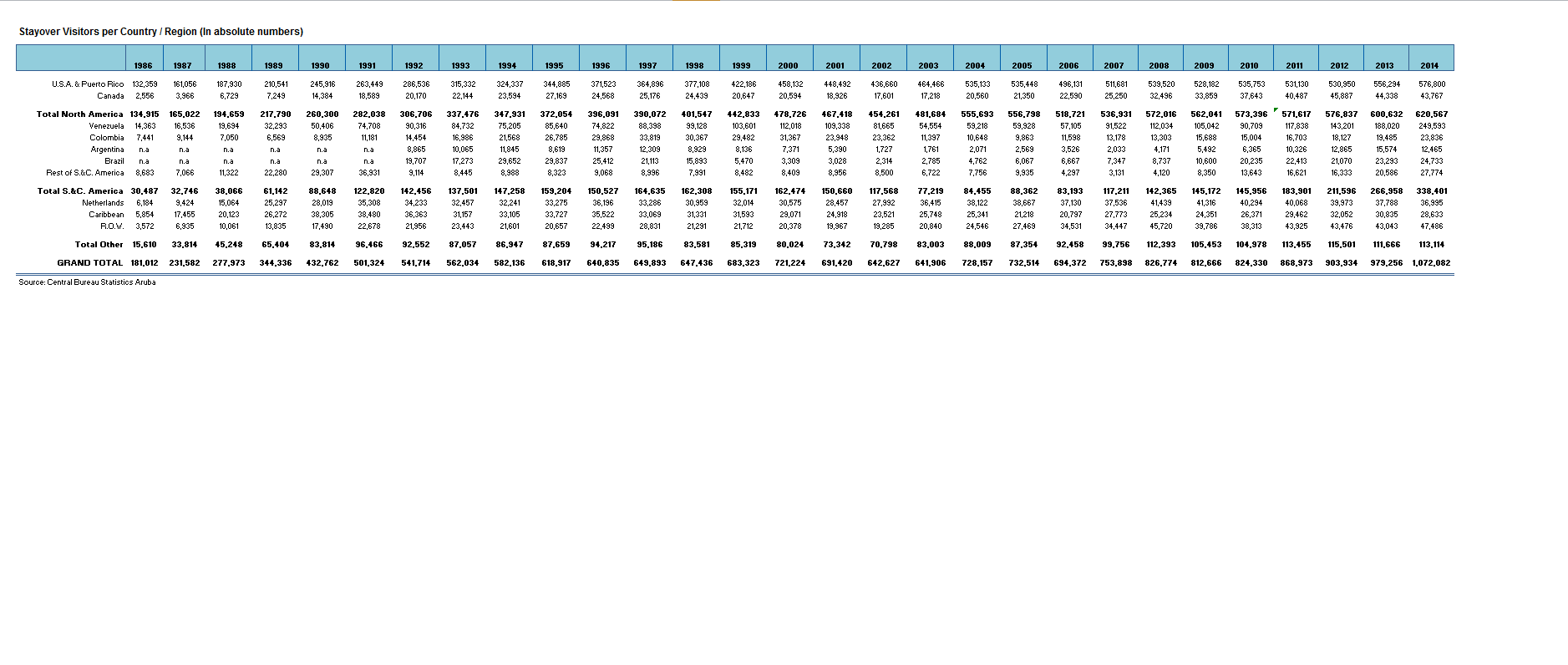 Da.1.1. Stayover Visitors per Country / Region Download items: Da.1.1.2014 – – (45 kB)