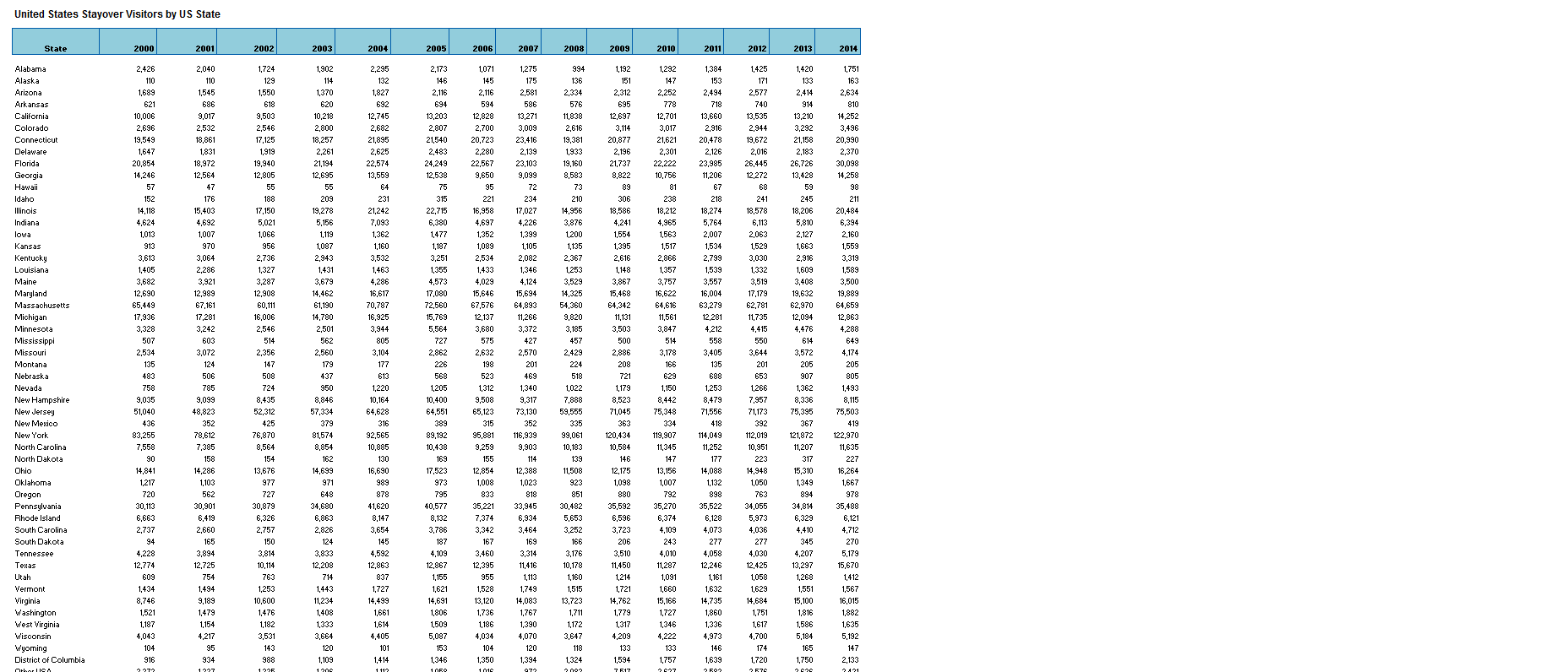 Da.1.6. United States Stayover Visitors by US State Download items: Da.1.6.2014 – – (46 kB)