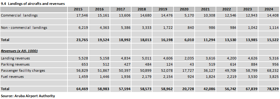 Table 9.4 Landings of aircrafts and revenues, 2015-2024 - -