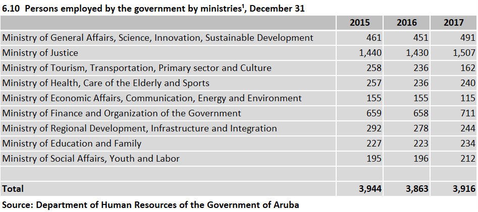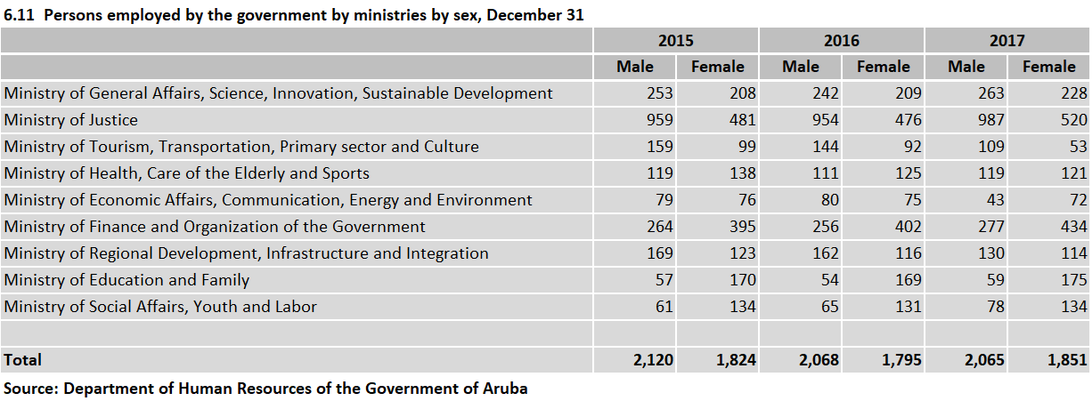 Download items: Table 6.11 Persons employed by the government by ministries by sex, December 31, 2015-2017 - - (23 kB) Table 6.10 Persons employed by the government by ministries, December 31, 2015-2017 - - (22 kB) 2020-06-10