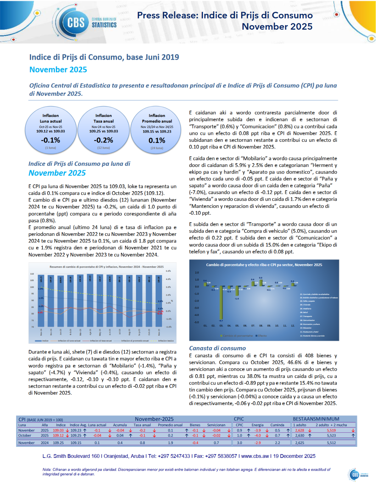 Esakinan ta e comunicadonan di prensa mensualmente publica di e Indice di Prijs di Consumo (CPI) 2024.