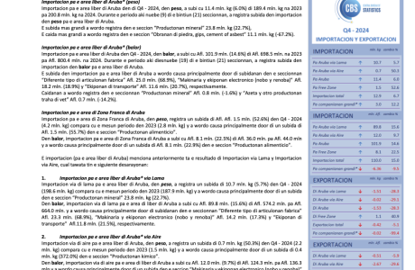 Esakinan ta e comunicadonan di prensa publica pa importacion y exportacion 2024. Download items: Comunicado-di-Prensa-di importacion-y-exportacion-2024 – – (2 MB) Comunicado-di-Prensa-di importacion-y-exportacion-Q4-2024 – – (2 MB) Comunicado-di-Prensa-di-importacion-y-exportacion-Q3-2024 – – (435 kB) Comunicado-di-Prensa-di-importacion-y-exportacion-Q2-2024 – – (299 kB) Comunicado-di-Prensa-di-importacion-y-exportacion-Q1-2024 – – (299 kB)Continue Reading
