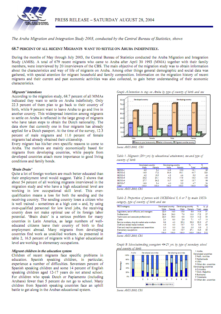 ARUBA MIGRATION AND INTEGRATION STUDY 2004
